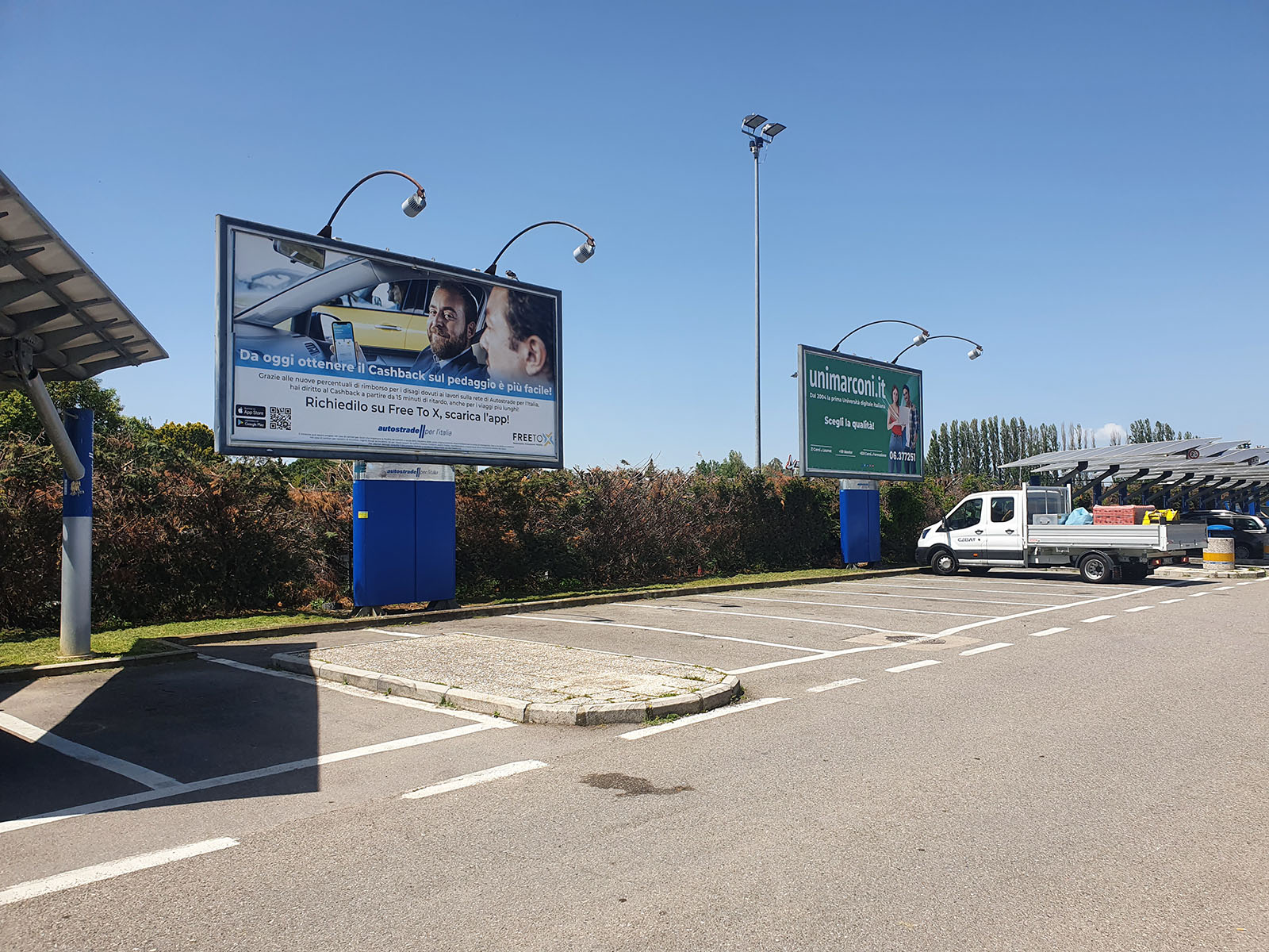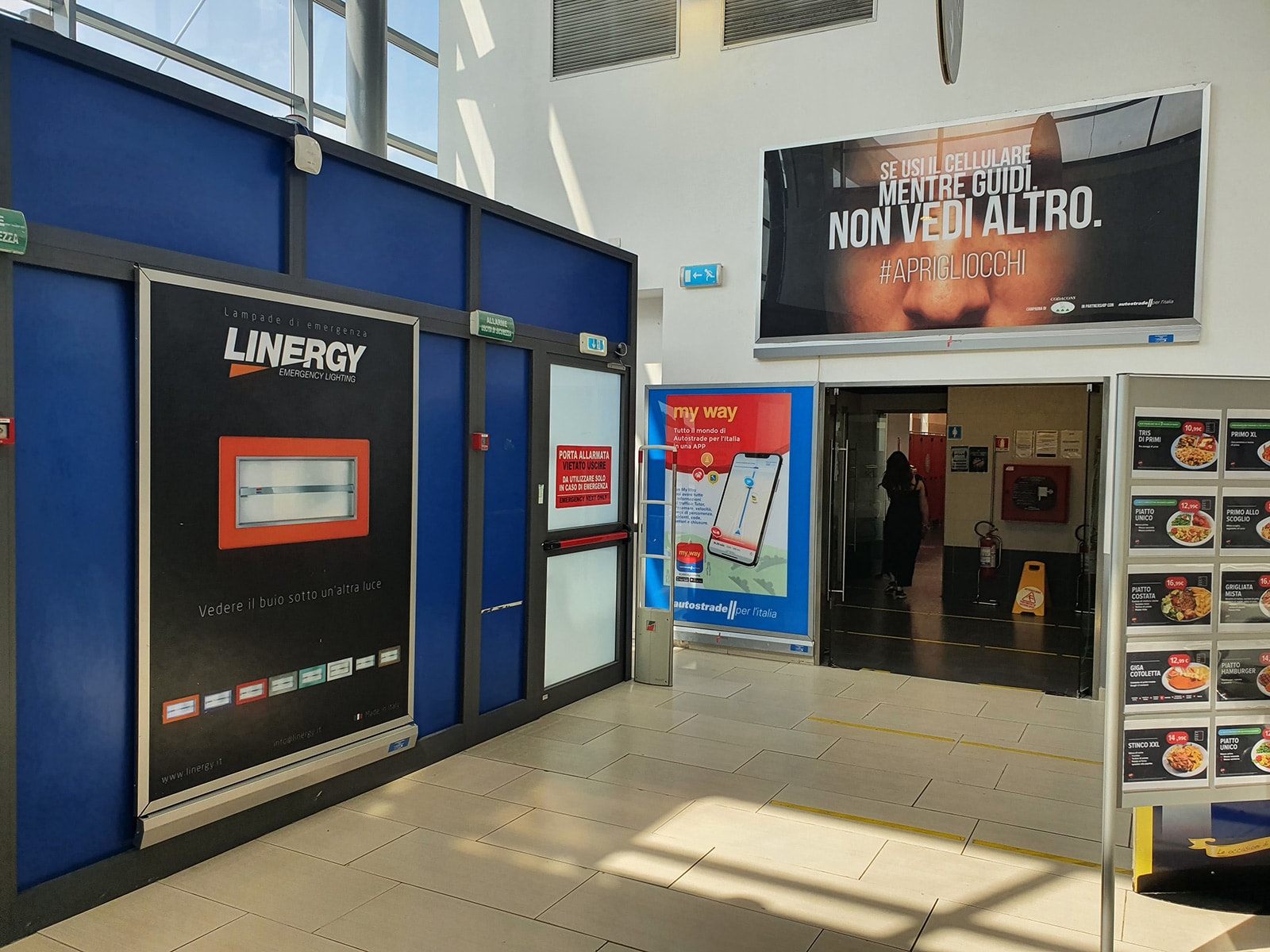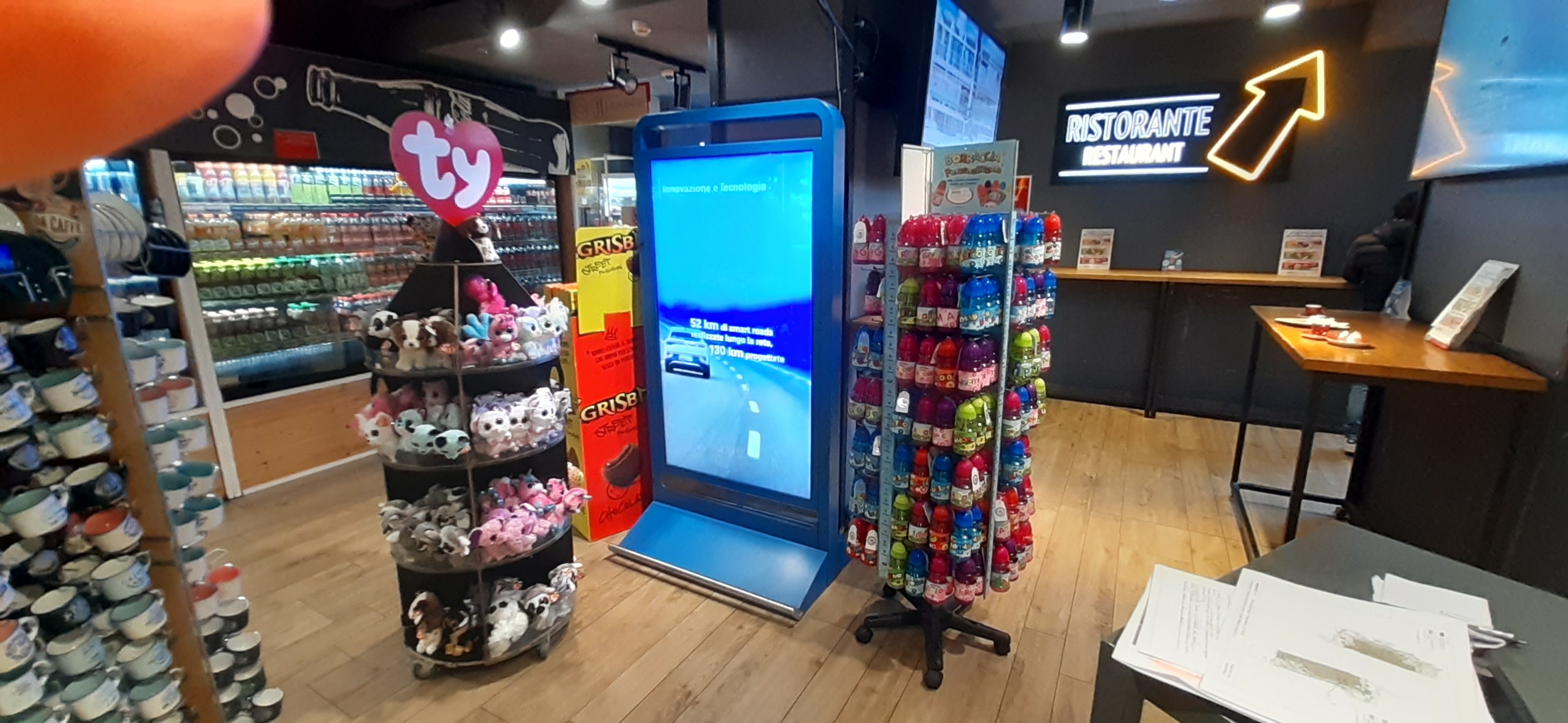The systems are placed inside the shopping and restaurant areas of the main service areas. They are backlit with LED technology that guarantees a bright uniform light. A type of technology known as HD lenticular that allows the creation of dynamic and three-dimensional effects, may also be used.