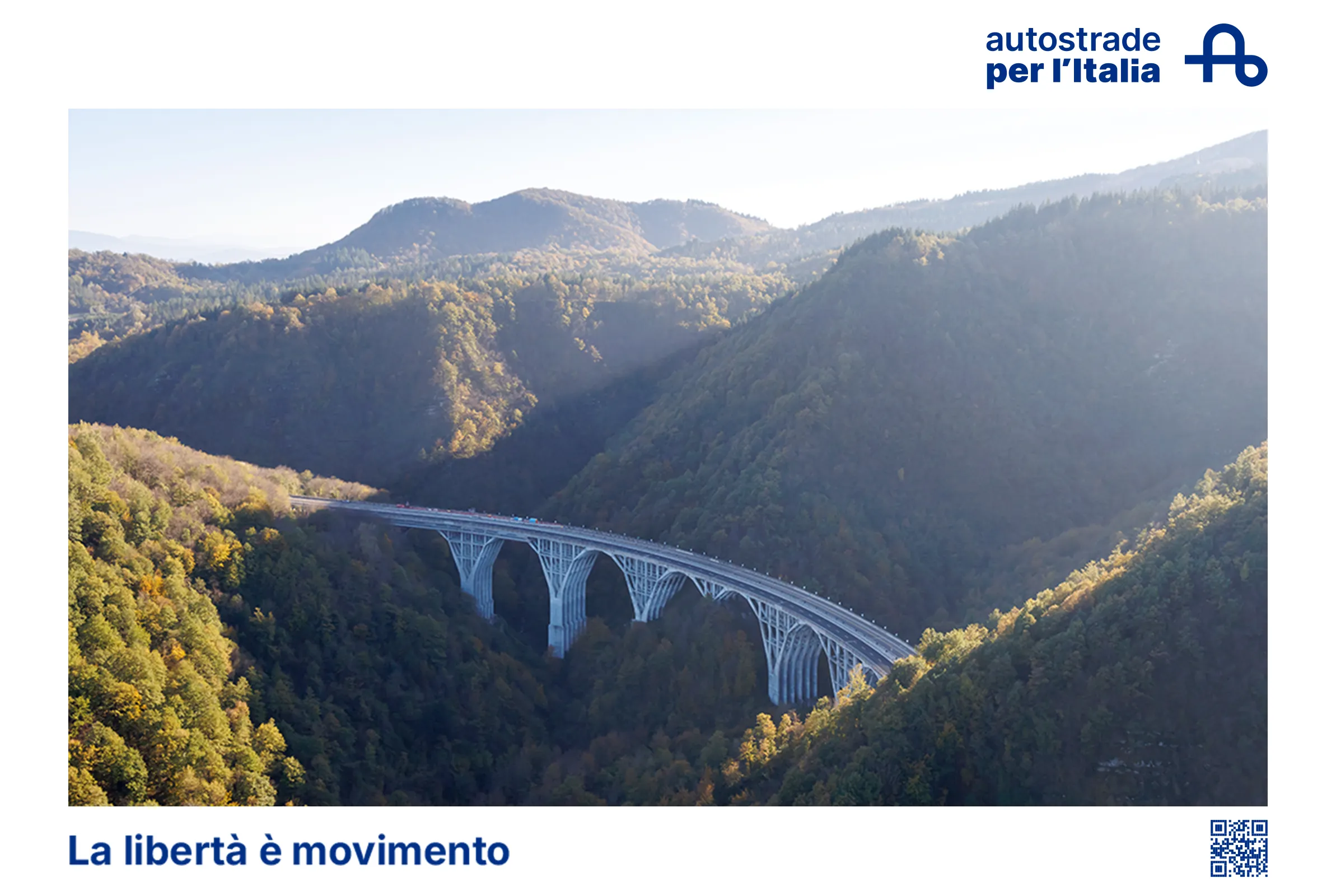 'Freedom is movement'. This is the claim of our institutional communication campaign, which celebrates motorways as a symbol of geographical connection and people’s freedom - the freedom to travel and choose our own path, according to our needs and time. The core element of the commercial, broadcast on the main national networks, is Giorgio Gaber's famous song, 'La Libertà', which bears a universal message of commitment and mutual relationship, becoming the ideal soundtrack to tell the story of the sustainable future of mobility.