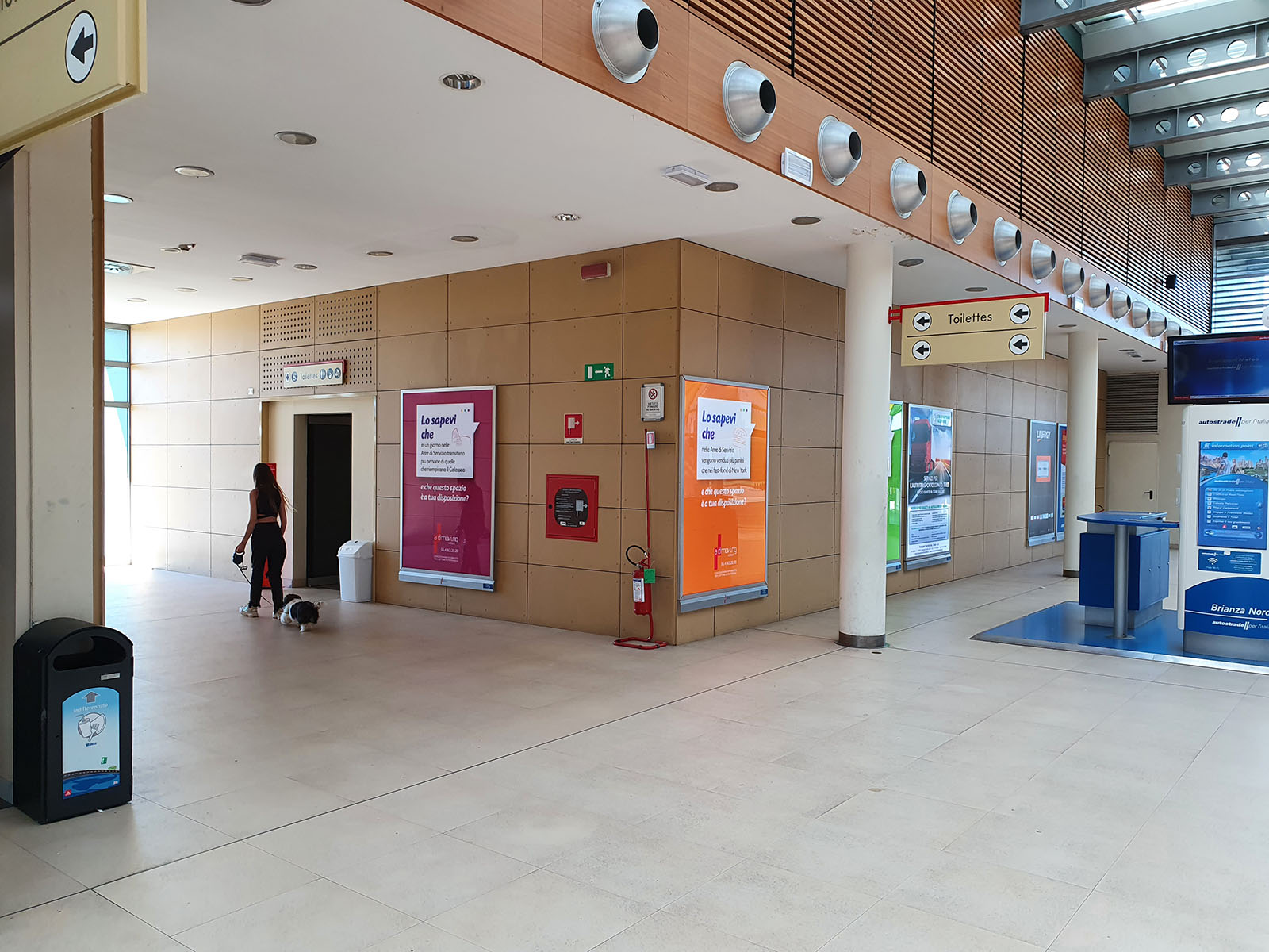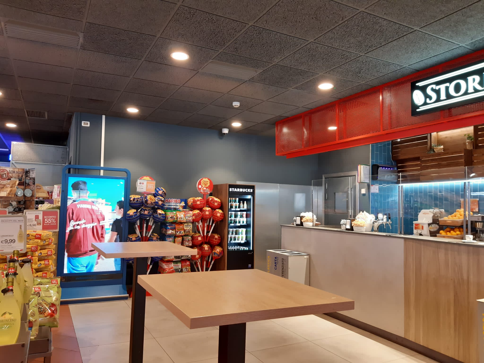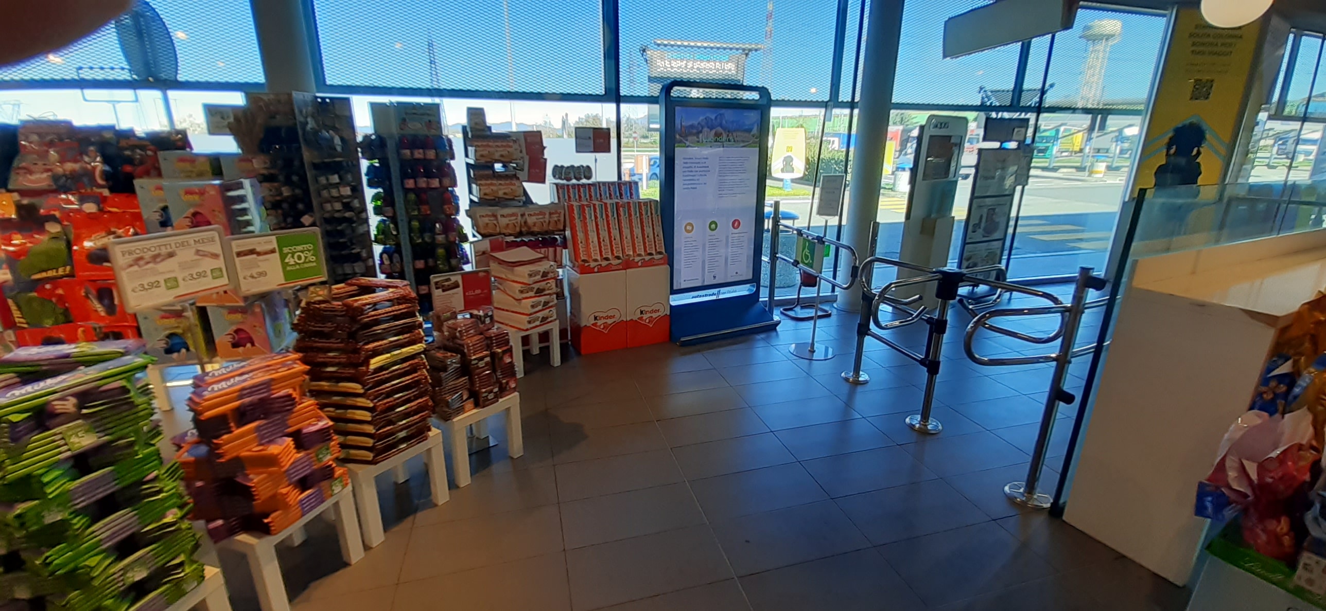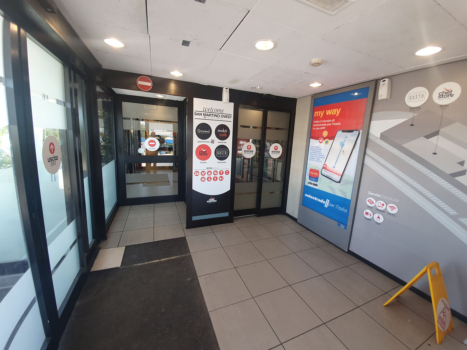 E’ il circuito di schemi verticali presenti nelle principali aree di servizio della rete autostradale italiana. Il circuito è composto da 105 Totem touch screen 65" indoor con audio, webcam, e digital signage full remote